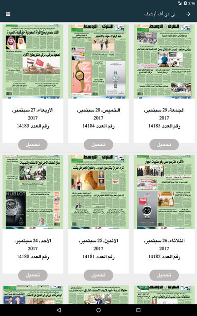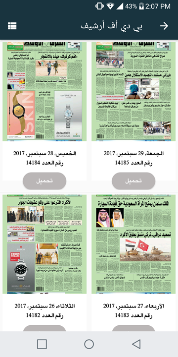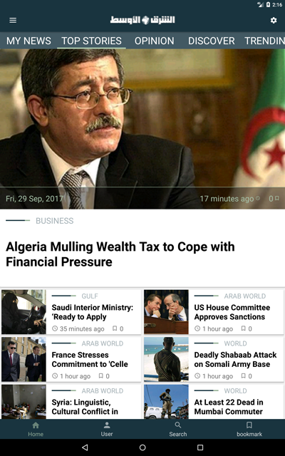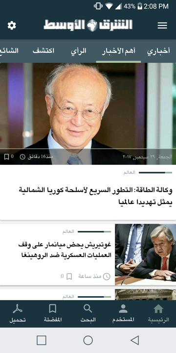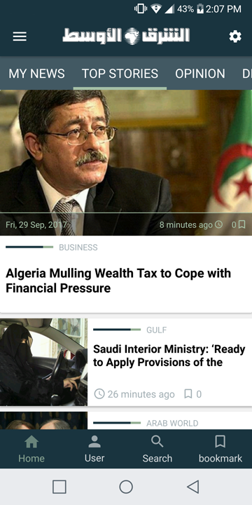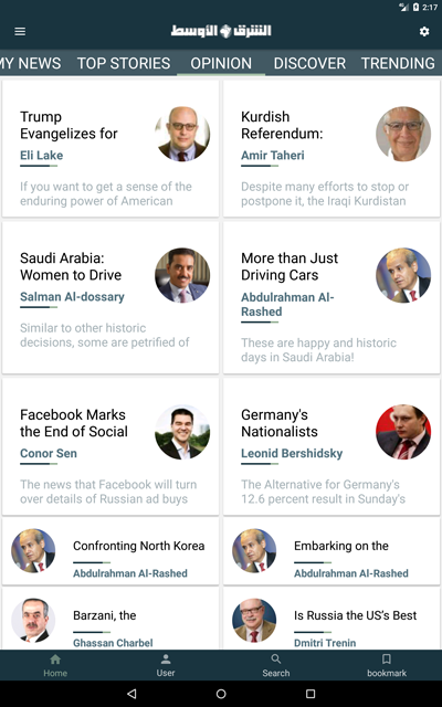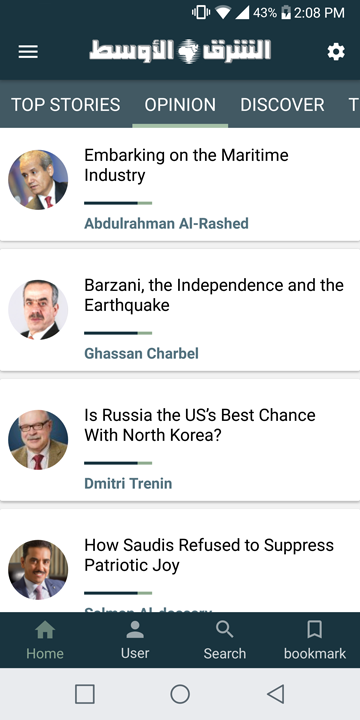 Asharq Al Awsat's daily articles are at your finger tips. Content is split into meaningful sections, allowing you to quickly locate your favorite news.