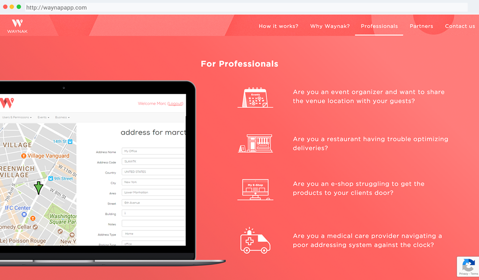 Waynak is a global project built to answer postal and localization issues. User-friendly, smart, reliable, safe and simple, with Waynak you can create, save and share your ‘Smart Address’ with any friend or service provider instantly. Get Waynak today and put an end to giving elaborate directions over the phone.